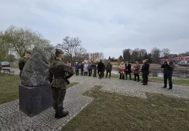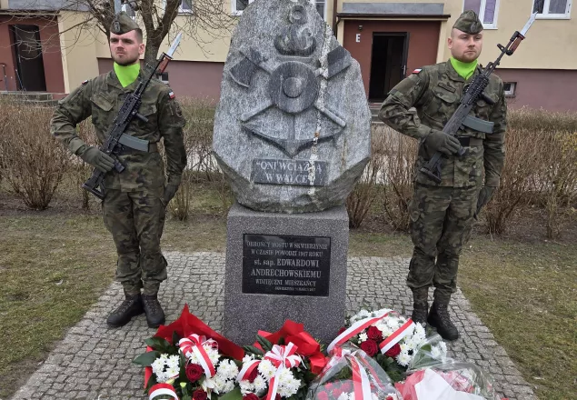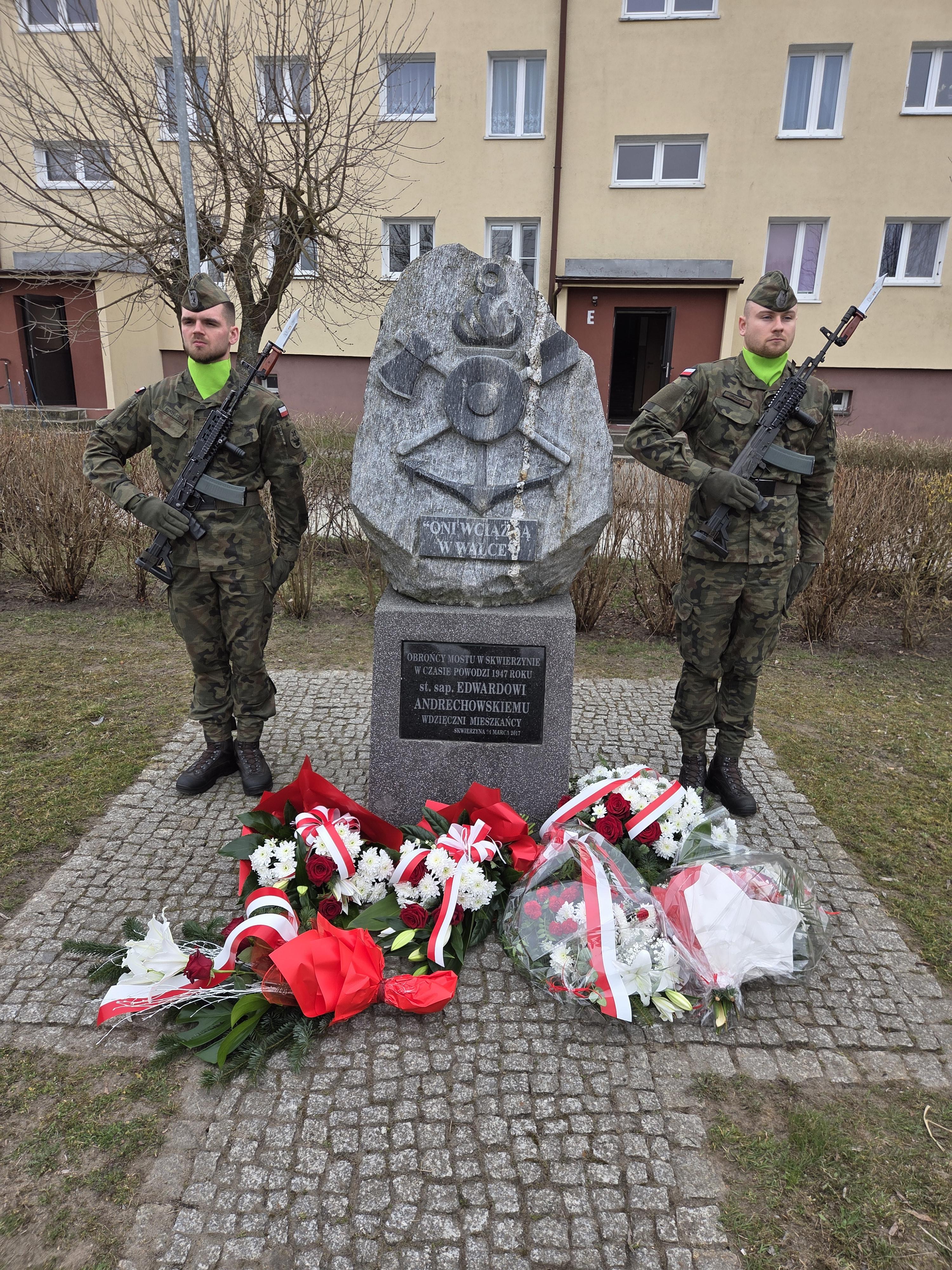 W 79. rocznicę śmierci st. sapera Edwarda Andrechowskiego, który zginął podczas obrony mostu przed krą na rzece Warcie w dniu 24.03.1947 r., pod pomnikiem sapera kwiaty złożyli Burmistrz Skwierzyny Wojciech Kowalewski wraz z Zastępcą Burmistrza Zbigniewem Moraczyńskim.