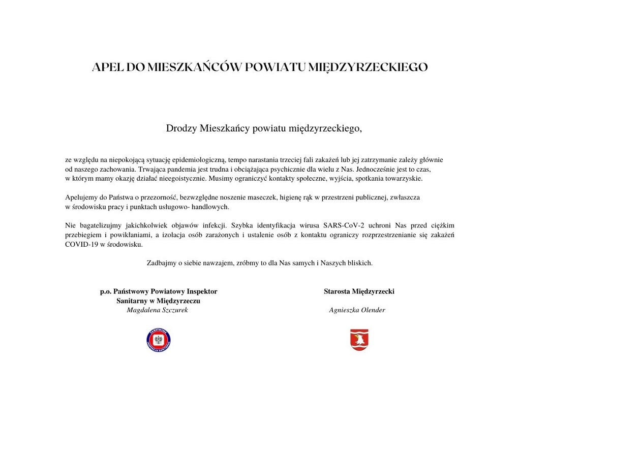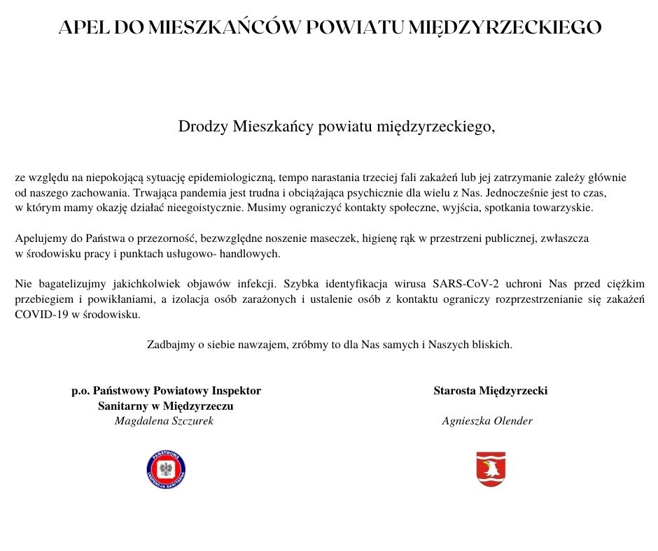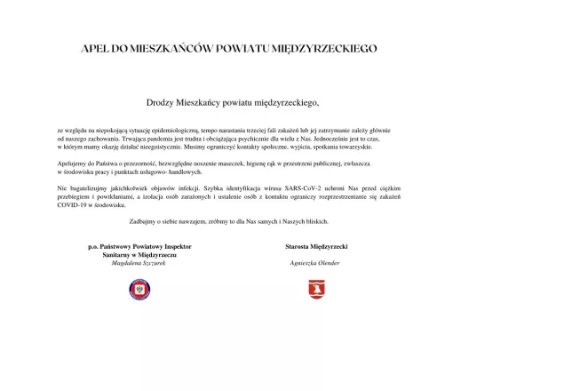 APEL DO MIESZKAŃCÓW POWIATU MIĘDZYRZECKIEGO
