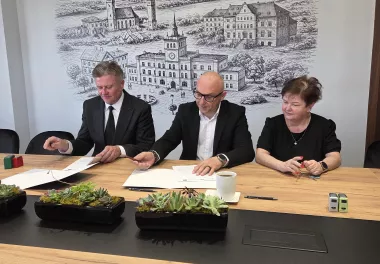 28 kwietnia 2026 r., Zastępca Burmistrza Skwierzyny Zbigniew Moraczyński przy kontrasygnacie Skarbnika Gminy Agnieszki Moskal podpisał umowę z wykonawcą Konsorcjum: Niewiadomski Sp. z o.o. z siedzibą w Międzyrzeczu oraz Przedsiębiorstwem Produkcyjno-Handlowo –Usługowym Niewiadomski Sp. z o.o. z siedzibą w Międzyrzeczu, reprezentowanym przez Pana Tomasza Niewiadomskiego dotyczącą realizacji inwestycji pn. „ Budowa sieci wodociągowej w Trzebiszewie”.