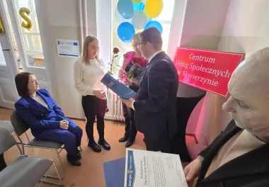 2 marca br. odbyło się spotkanie inaugurujące przekształcenie Ośrodka Pomocy Społecznej w Centrum Usług Społecznych w Skwierzynie. Burmistrz Skwierzyny, Wojciech Kowalewski, powołał na stanowisko dyrektora Panią Annę Zabielską. Zastępcą Dyrektora została Pani Karolina Bilon-Kruś. Podczas uroczystości Burmistrz wręczył podziękowania i nagrody pracownikom szczególnie zaangażowanym w proces przekształcenia. W spotkaniu uczestniczyli również Zastępca Burmistrza Zbigniew Moraczyński, Skarbnik Gminy Agnieszka Moskal, Sekretarz Gminy Bożena Kaśków, Przewodnicząca Rady Miejskiej w Skwierzynie Dorota Stefańska, Przewodniczący Miejskiej Rady Seniorów Włodzimierz Szopinski oraz Przewodniczący Komisji Spraw Społecznych Rady Miejskiej w Skwierzynie Tomasz Kownacki.
