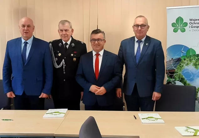 Dnia 14 października br. Burmistrz Skwierzyny Lesław Hołownia wraz z Prezesem Ochotniczej Straży Pożarnej w Skwierzynie Waldemarem Kowalewskim gościli w Wojewódzkim Funduszu Ochrony Środowiska i Gospodarki Wodnej w Zielonej Górze. Okazją było podpisanie, przez OSP w Skwierzynie z WFOŚiGW w Zielonej Górze, umowy dotacji do zakupu ciężkiego samochodu ratowniczo – gaśniczego. Pragniemy bardzo podziękować zarządowi WFOŚiGW w Zielonej Górze, Panu Prezesowi Mariuszowi Herbutowi oraz Panu Wiceprezesowi Ireneuszowi Madejowi za życzliwość i wsparcie finansowe inwestycji w kwocie 150 tys. złotych.