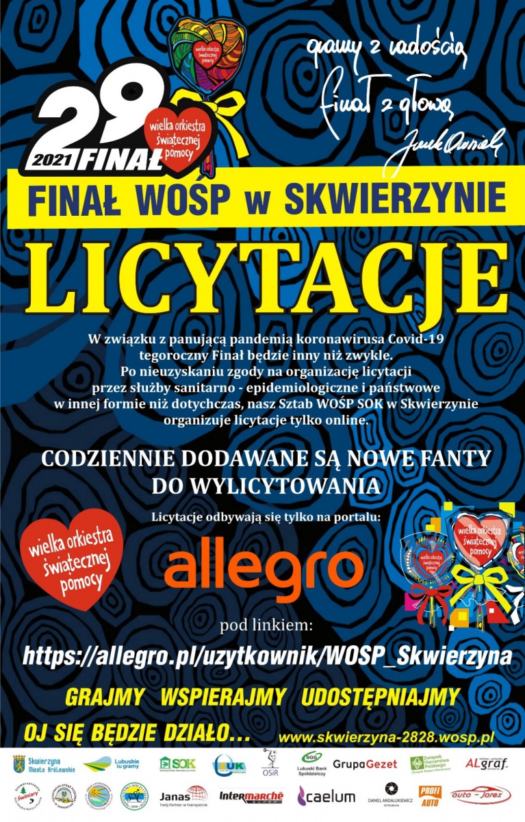 - Przedmioty można licytować tylko na skwierzyńskich licytacjach allegro (zdjęcia dostępne również poniżej): https://allegro.pl/uzytkownik/WOSP_Skwierzyna