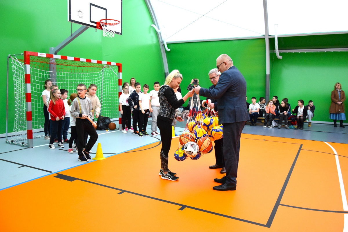 13 tycznia br. przy Społecznej Szkole Podstawowej w Trzebiszewie nastąpiło oficjalne otwarcie hali sportowej. Jest to długo wyczekiwana inwestycja dla dzieci i młodzieży uczęszczającej do tej placówki. Koszt budowy wyniósł prawie 1,1 mln złotych i pokryty został ze środków budżetu Gminy Skwierzyna. Należy dodać, że obecnie trwają prace projektowe i dokumentacyjne w zakresie postawienia przy hali kontenerowych szatni wraz z sanitariatami oraz budowy placu zabaw. Jak podkreślał w swoim przemówieniu Burmistrz Skwierzyny Lesław Hołownia, budowa tego typu obiektów na terenie naszej gminy jest koniecznością ponieważ od wielu lat borykaliśmy się z brakiem dostępności naszych mieszkańców do obiektów sportowych. Stąd też podjęte decyzje o budowie pełnowymiarowej hali sportowej w Skwierzynie, hali sportowej w Trzebiszewie, siłowni plenerowych, czy boiska wielofunkcyjnego w Murzynowie, które powstanie pod koniec 2023 roku. Na przestrzeni tylko lat 2021 – 2023 Gmina Skwierzyna zainwestuje w obiekty i infrastrukturę sportową prawie 20 mln złotych.