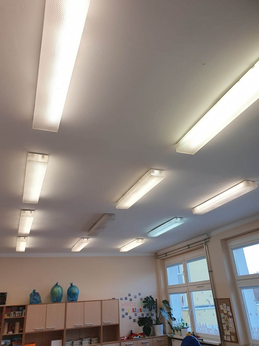 - Demontaż 612 szt. opraw w kasach, bibliotece, czytelni, świetlicy, pomieszczeniach administracyjnych, stołówce;
