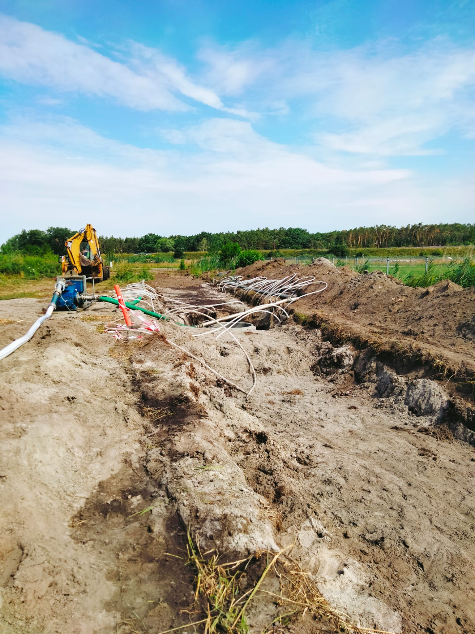 Aktualnie Wykonawca prac realizuje sieć wodociągową zlokalizowaną przy drogach wraz ze stacją podnoszenia ciśnienia.