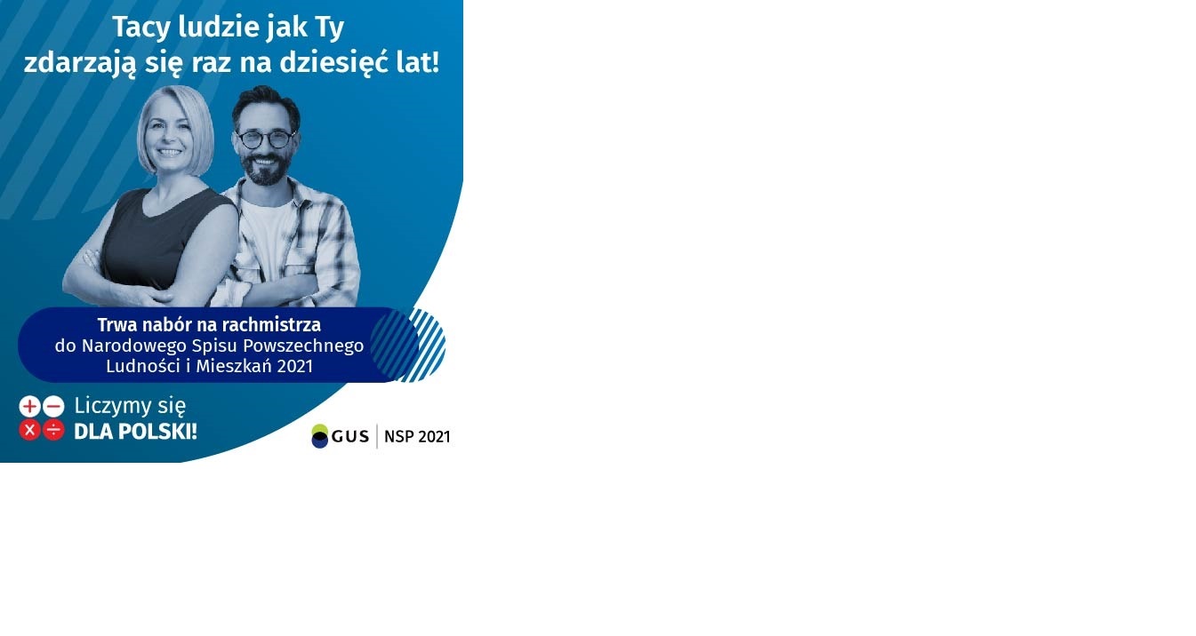 Dnia 29 stycznia 2021 r. na podstawie art. 24 ust. 1 pkt. 6 ustawy z dnia 9 sierpnia 2019 r. o narodowym spisie powszechnym ludności i mieszkań w 2021 r. (Dz. U. 2019 r. poz. 1775, z późn.zm.) – zwanym dalej NSP 2021 Burmistrz Skwierzyny Lesław Hołownia – Gminny Komisarz Spisowy w Skwierzynie ogłasza otwarty i konkurencyjny nabór kandydatów na rachmistrzów spisowych wykonujących czynności w ramach prac spisowych, związanych z przeprowadzeniem na terytorium Rzeczpospolitej Polskiej w 2021 r. spisu powszechnego NSP 2021.