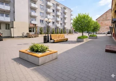 - Całość dopełni nowa zieleń miejska oraz gruntowne czyszczenie nawierzchni deptaka.