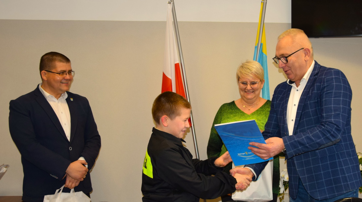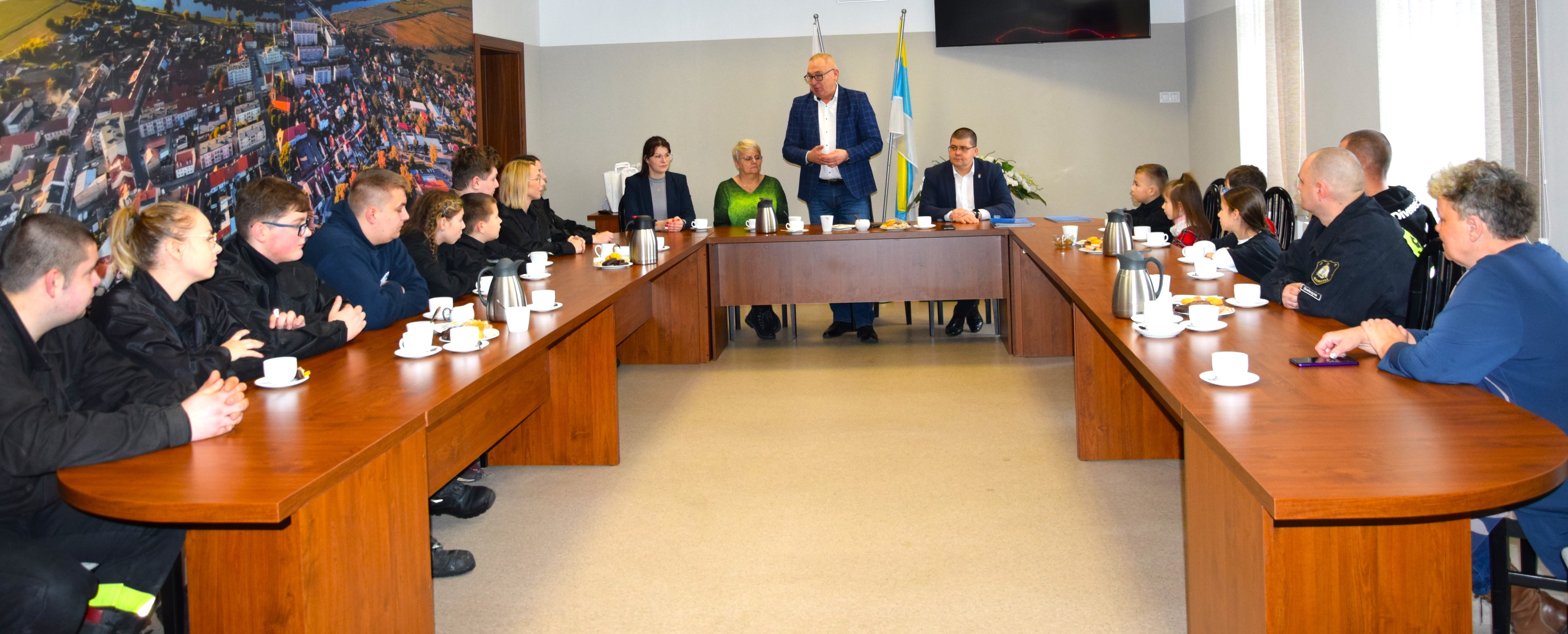 28 grudnia br. w skwierzyńskim ratuszu odbyło się spotkanie, w którym uczestniczyli Burmistrz Skwierzyny Lesław Hołownia wraz z zastępcą Wojciechem Kowalewskim, Kierownik Ośrodka Pomocy Społecznej Anna Zabielska, Podinspektor ds. Zarzadzania Kryzysowego i OC Natalia Pacholak oraz członkowie Ochotniczych Straży Pożarnych ze Skwierzyny i Trzebiszewa, którzy w okresie przedświątecznym, w ramach wolontariatu, dostarczali paczki dla seniorów. Burmistrz podziękował za zaangażowanie i pomoc wszystkim, którzy się w tegoroczną akcję włączyli; strażakom, pracownikom Ośrodka Pomocy Społecznej, sołtysom. Podkreślić należy, że wśród strażaków dużym zaangażowaniem wykazywali się członkowie Młodzieżowych Drużyn Pożarniczych, co spotkało się z ogromnym uznaniem wśród obdarowywanych mieszkańców. Upominki i podziękowania z rąk burmistrza i kierownik OPS otrzymali: