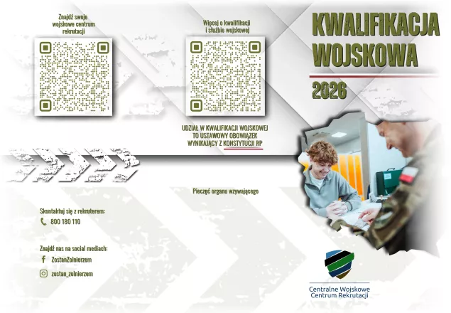 Rusza tegoroczna kwalifikacja wojskowa. Sprawdź, kogo dotyczy obowiązek stawiennictwa, kiedy i gdzie należy się zgłosić. Pamiętaj – brak wezwania imiennego nie zwalnia z obowiązku stawienia się !
